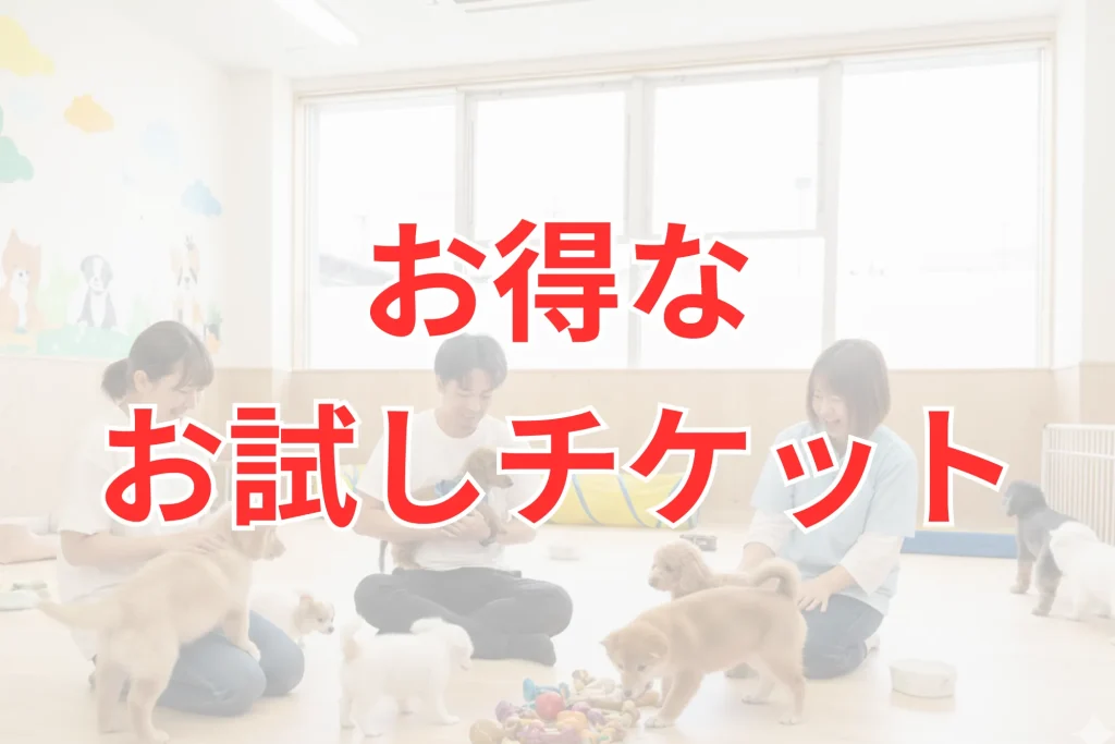 | 子犬のしつけ ※生後6ヶ月まで | 子犬:犬の保育カフェ (散歩デビュー) 子犬:パピーパーティー (社会化のみ) |