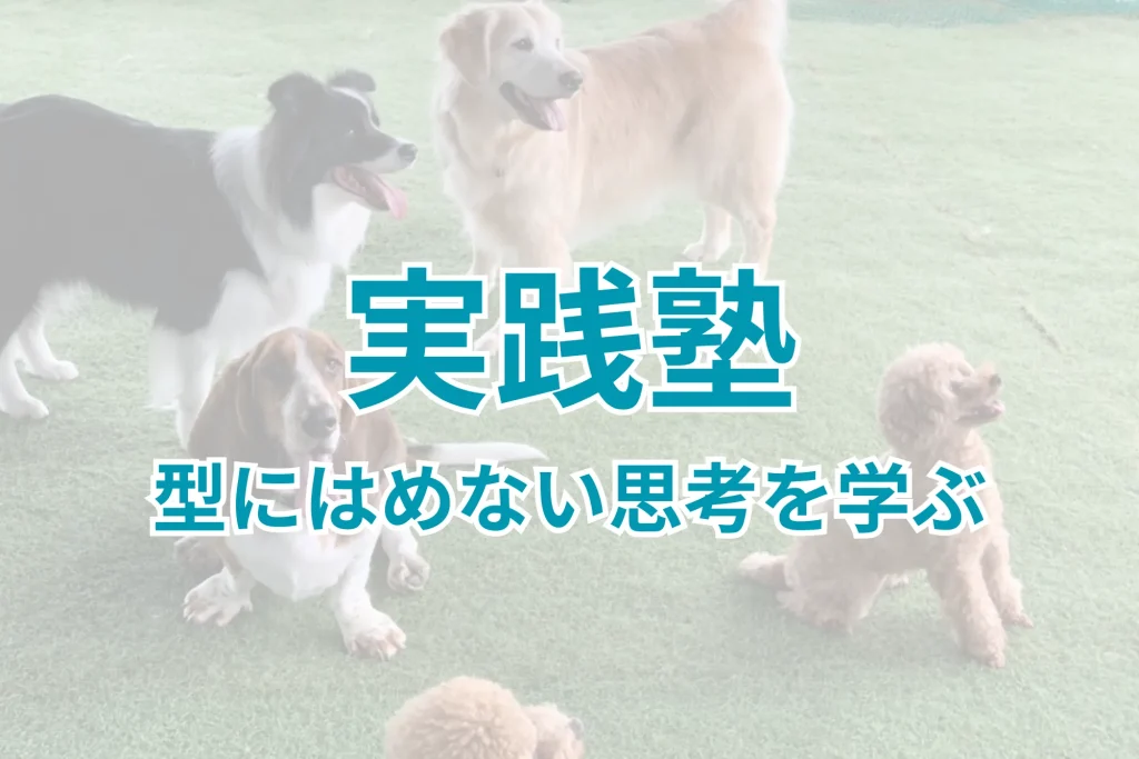 | 犬との接し方 | 飼い主:1dayレッスン (しつけ方習得・行動問題修正) 飼い主・プロ:実践塾 (動物福祉・QOL向上) ※愛犬同伴不可 |